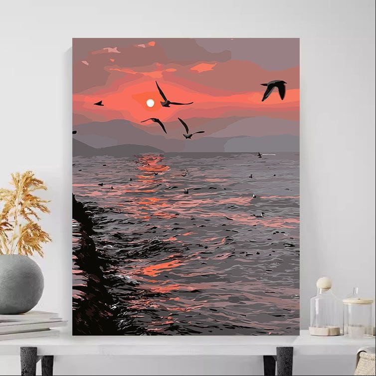 Kit de pintura de atardecer rosado en el mar 40cm x 50cm.