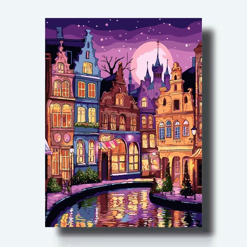 Kit de pintura por números nocturna. Perfecto para principiantes o amantes del arte DIY, este kit te brinda todo lo que necesitas para relajarte, divertirte y decorar con tu propia creación. Tamaño 40cm x 50cm.